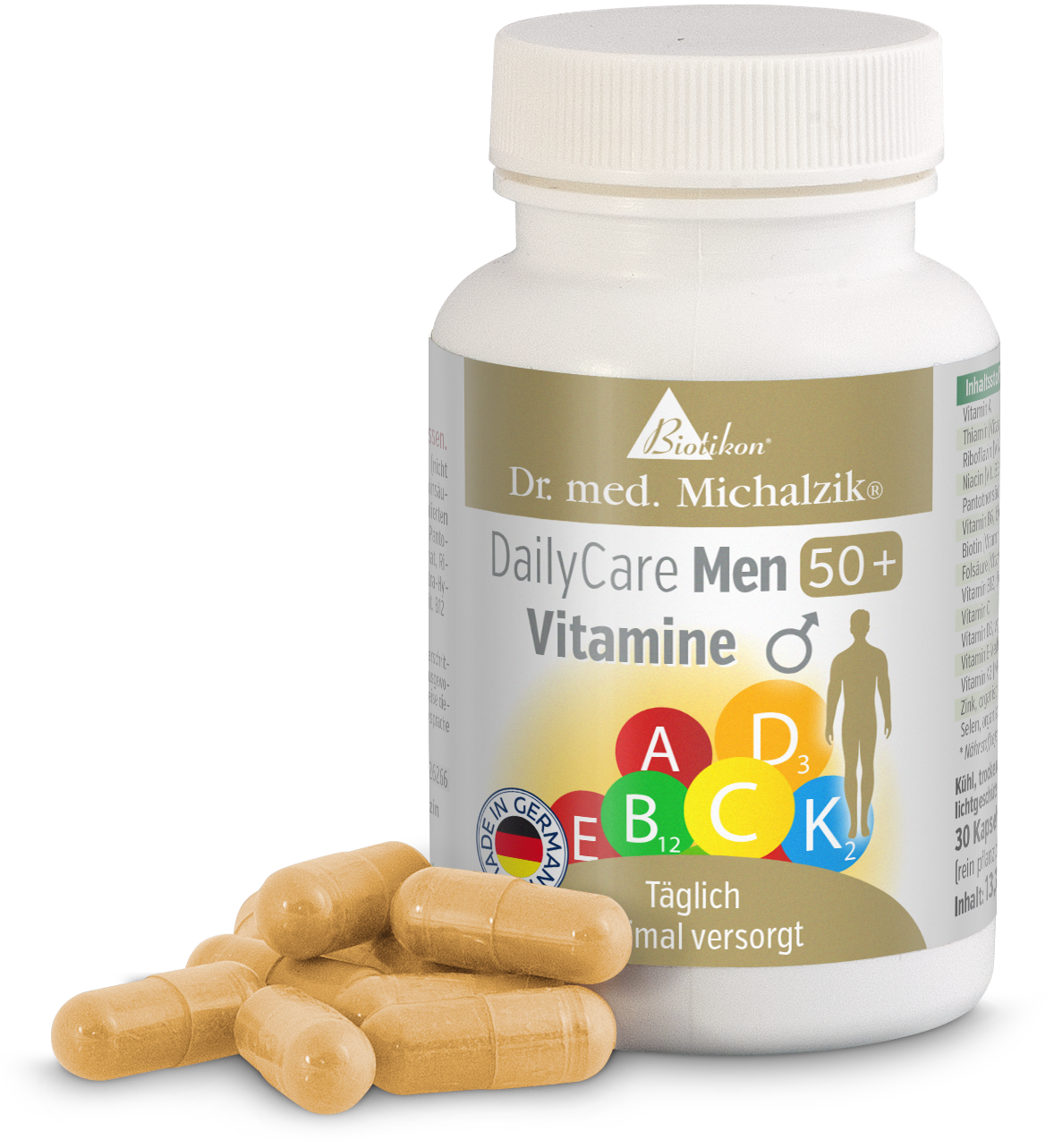 ![]() Alle wichtigen Vitamine für den Mann ab 50; Tagesempfehlung… Produkt-Details (1.278,57 €/kg, 0,60 €/Kapsel) 30 Kapseln (1.278,57 €/kg, 0,60 €/Kapsel) 17,90 € | DailyCare Men 50+ Multivitamine | 17,90 € (1.278,57 €/kg, 0,60 €/Kapsel) | Alle wichtigen Vitamine für den Mann ab 50; Tagesempfehlung: 1 Kapsel. | 30 Kapseln |