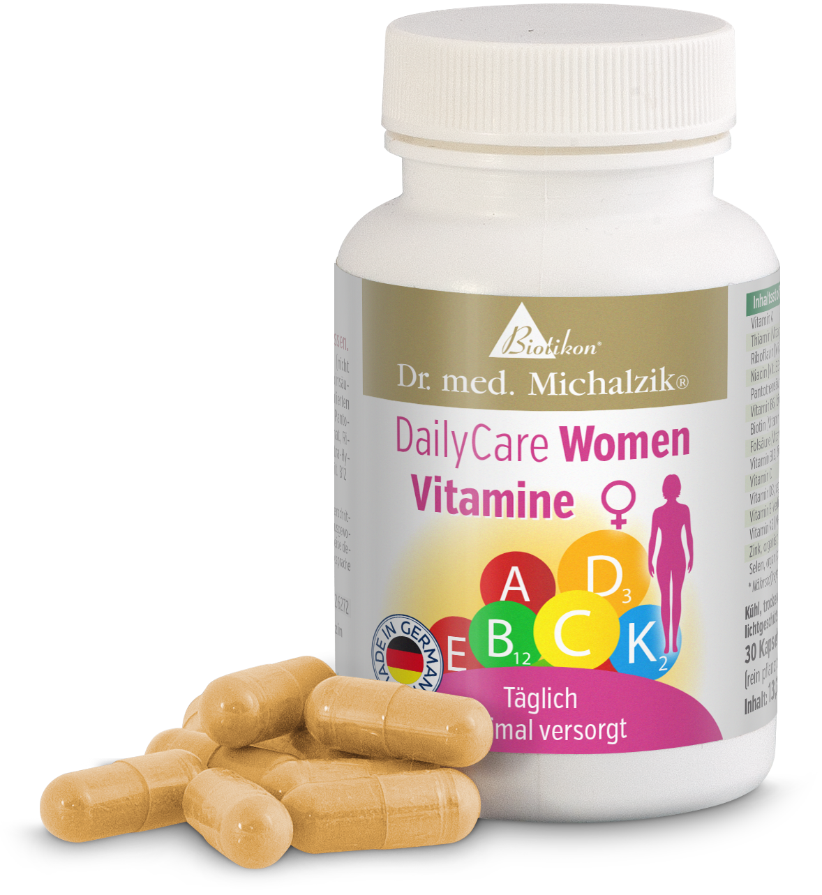 ![]() Alle wichtigen Vitamine für die Frau ab 50; Tagesempfehlung… Produkt-Details (1.278,57 €/kg, 0,60 €/Kapsel) 30 Kapseln (1.278,57 €/kg, 0,60 €/Kapsel) 17,90 € | DailyCare Women 50+ Multivitamine | 17,90 € (1.278,57 €/kg, 0,60 €/Kapsel) | Alle wichtigen Vitamine für die Frau ab 50; Tagesempfehlung: 1 Kapsel. | 30 Kapseln |